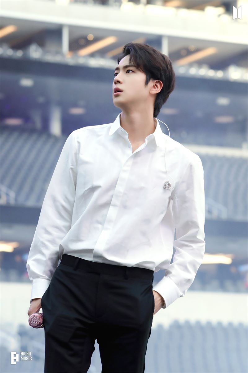방탄소년단 진이 완벽한 아름다움으로 전 세계를 뒤흔들었다.