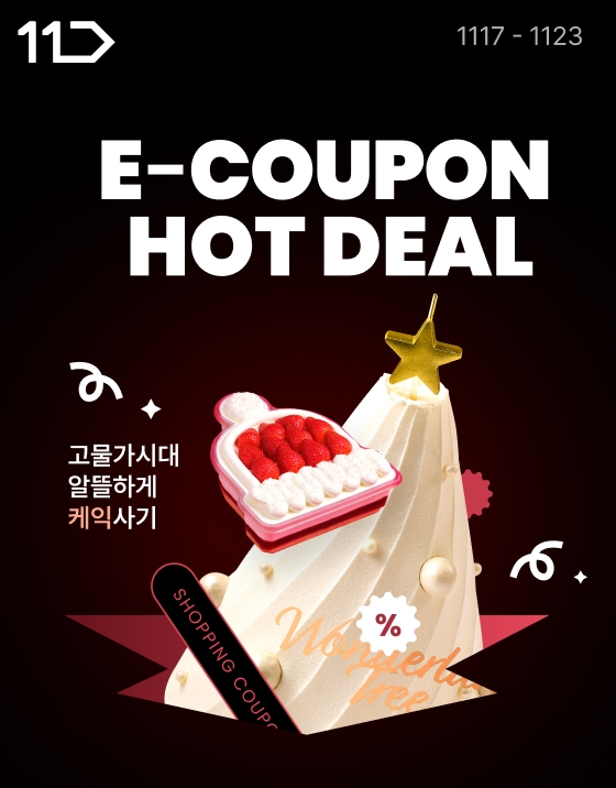11번가는 외식·디저트 수요가 급증하는 연말 시즌을 앞두고 ‘빕스(VIPS)’, ‘투썸플레이스’, ‘파스쿠찌’, ‘메가MGC커피’ 등 인기 프랜차이즈 7곳의 e쿠폰을 특가에 선보인다. 11번가는 오는 23일까지 ‘E쿠폰 핫딜’ 프로모션을 실시, 외식 프랜차이즈들의 할인권과 모바일금액권을 다채롭게 판매한다고 17일 밝혔다
