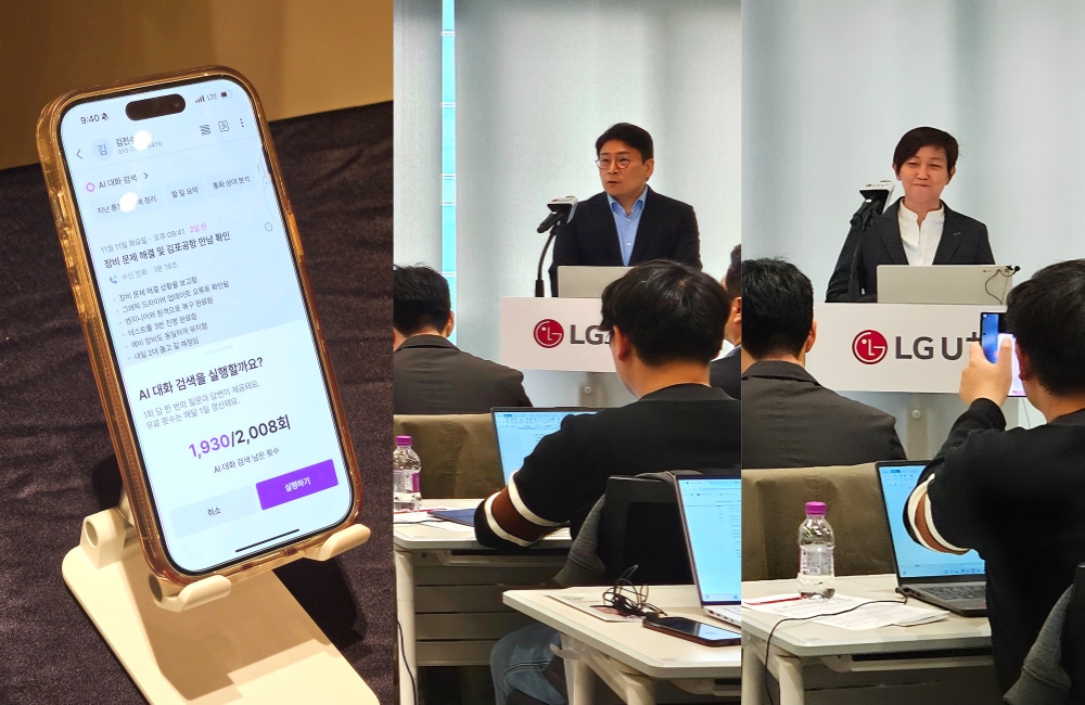 "통화 중 궁금한 걸 바로 물어보세요. 앱을 열 필요도 없습니다."LG유플러스의 이재원 컨슈머부문장(부사장)과 최현호 상무 등은 13일 서울 종로구 센터폴리스 컨퍼런스룸에서 열린 기자간담회에서 '익시오(ixi-O) AI 비서'를 소개하며 이렇게 말했다. 경쟁사인 SK텔레콤의 음성 AI비서 '에이닷'보다 진화한 방식으로 도