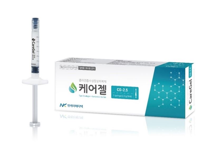 케어젤은 겐타마이신이 함유된 겔형 콜라겐 흡수성 창상피복재로 고농도의 콜라겐과 겐타마이신이 국소에 직접 작용해 복합적인 효과를 나타내는 의료기기다.
