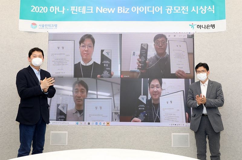 하나은행이 지난 5일 오후 을지로 본점에서 '하나·핀테크 New Biz 아이디어 공모전' 온라인 시상식을 개최했다 (사진=하나은행)