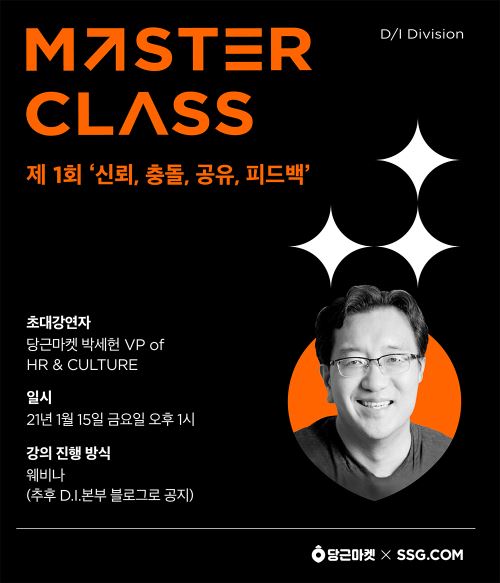 SSG닷컴이 국내외 IT 업체의 유명인사를 초빙해 성공 노하우와 비즈니스 인사이트를 공유하는 세미나 ‘마스터 클래스(Master Class)’를 매달 한 번 진행한다. IT기반 플랫폼기업으로서 ‘상대의 장점을 스스럼없이 배우고 새로운 혁신의 기회로 삼겠다’는 취지에서 기획됐다.