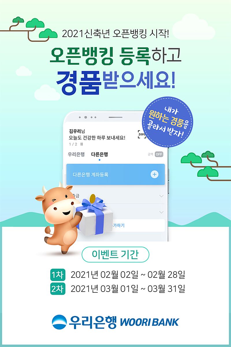 8일 우리은행에 따르면 오는 3월 31일까지 시행하는 이번 이벤트는 우리은행 모바일뱅킹인 우리WON뱅킹에서 오픈뱅킹 최초 신규 등록 고객 중 이벤트 페이지에서 응모한 고객을 대상으로 한다.