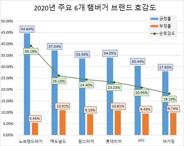 글로벌빅데이터연구소는 소비자 관심도에 이어 6개 햄버거 브랜드에 대한 소비자 호감도를 분석했다.