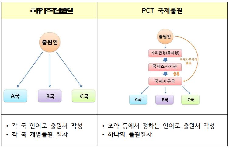 '해외 직접 출원'과 'PCT 출원' 절차 비교 [자료=특허청]