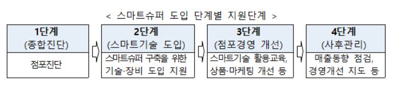'스마트슈퍼 육성사업'은 동네슈퍼에 출입인증장치, 무인 계산대 등 무인 운영에 필요한 기술과 장비를 도입해 소상공인이 야간시간에 추가 매출을 올리고 노동시간을 단축해 삶의 질을 높일 수 있도록 지원하는 사업이다.