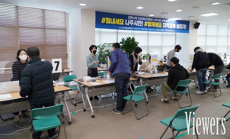 나주시(시장 강인규)는 각 읍·면·동 실정에 맞게 거동이 불편한 고령자, 중증질환자, 장애인 등 사회취약계층을 위해 찾아가는 재난지원금 신청 서비스를 실시하고 있다고 12일 밝혔다.