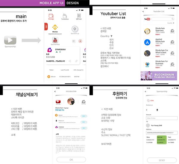 암호화폐로 유튜버에게 후원하기 위해서 별도의 거래소를 거칠 필요가 없다. 앱스토어에서 마이스타월렛을 설치하고 후원할 유투버를 선택한 후 후원금으로 보내려고 하는 암호화폐(비트코인, 이더리움, 스타그램토큰)를 설정해 전송 버튼만 누르면 된다.