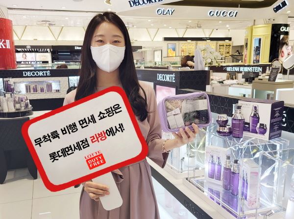 롯데면세점이 무착륙 국제 관광 비행 출국객을 대상으로 첫 번째 ‘면세품’ 라이브 방송을 진행한다. (사진=롯데면세점)