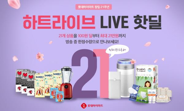 롯데하이마트(대표 황영근) 라이브커머스 ‘하트라이브’가 창립 21주년을 기념해, 21일 저녁 6시에 ‘라이브 핫 딜’ 행사를 펼친다.