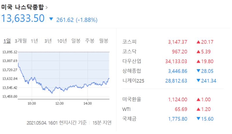 특히 큰 타격을 입은것은 기술주다. 애플 3.5%, 테슬라 1.6%, 아마존은 2.2%가량의 큰 하락을 보였다.