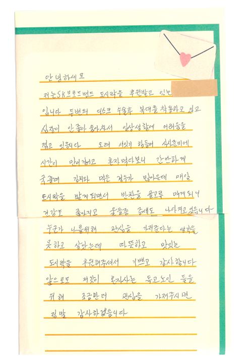 최근 SK브로드밴드 사무실에 편지 한 통이 도착했다. 경기 수원시에 거주 중인 70대 홀몸 어르신이 직접 적은 감사 손편지였다. 편지에는 다른 어르신들에 대한 관심과 지원을 부탁하는 메시지도 함께 담겨 있었다.