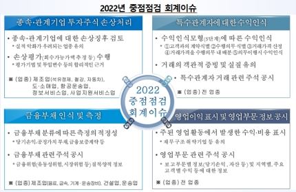한편 금감원은 회사와 감사인이 주의를 기울일 수 있도록 전년도 6월 중으로 심사 중점 이슈를 공개하고 있다.
