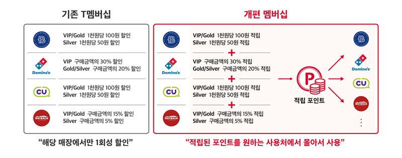 제휴사 할인 중심으로 운영되던 SK텔레콤의 기존 T멤버십이 포인트 형태로 바뀐다. 폐쇄형 멤버십에서 오픈형 마케팅 플랫폼으로의 변화를 통해 트렌드 선도하겠다는 의지다.