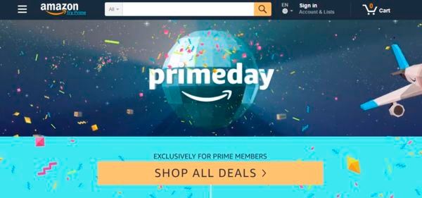 프라임데이 진행중인 아마존 쇼핑몰 화면. [자료=아마존 홈페이지]
