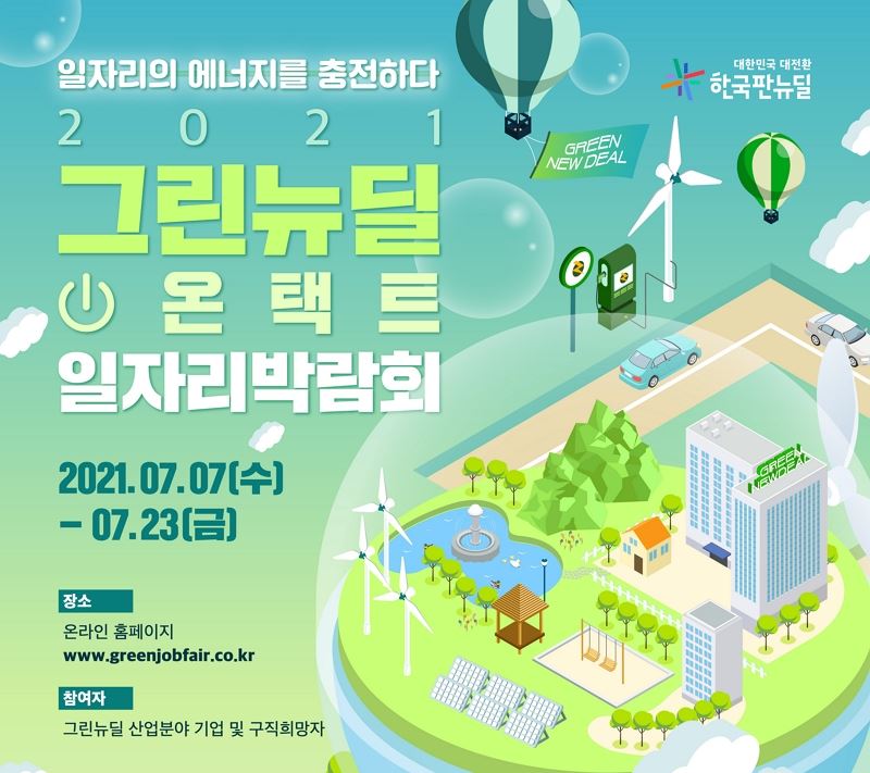 박람회 참가방법 및 채용정보는 ‘2021 그린뉴딜 온택트 일자리박람회’ 홈페이지에서 확인할 수 있다.
