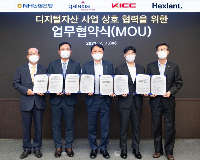 NH농협은행(은행장 권준학)은 지난 7일 서울 중구 소재 NH농협은행 본사에서 갤럭시아머니트리(대표이사 신동훈), 한국정보통신(대표이사 임명수), 헥슬란트(대표이사 노진우)와 함께 ‘디지털자산 사업 상호협력을 위한 업무협약’을 체결했다고 8일 밝혔다.