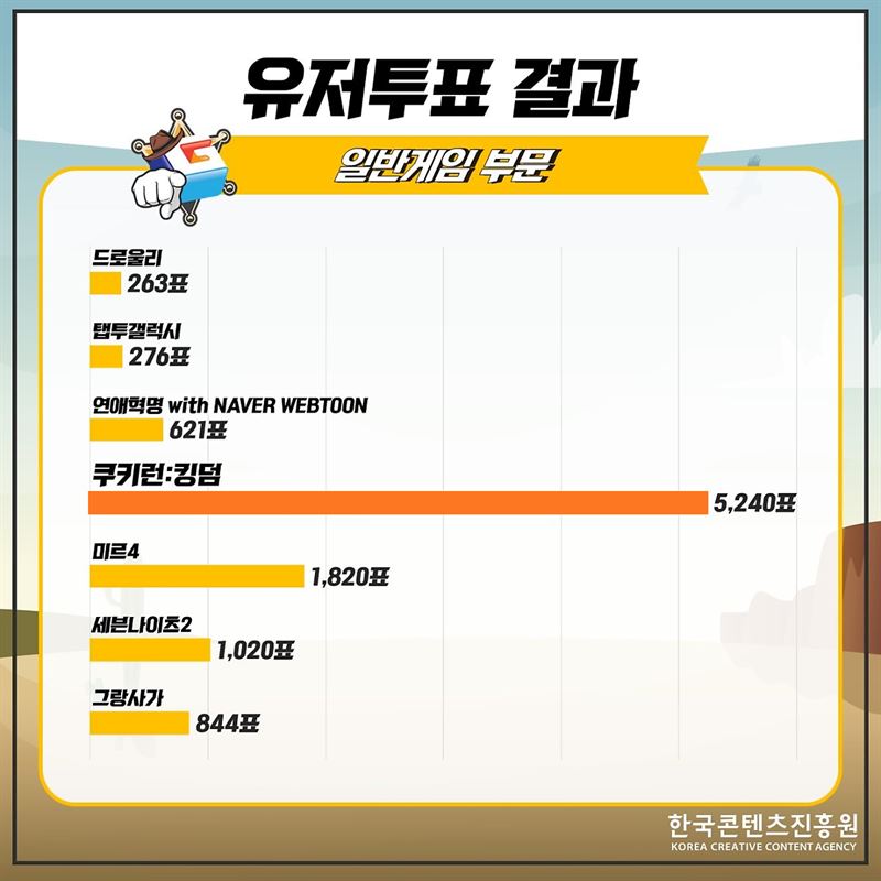 특히 쿠키런: 킹덤은 유저투표에서 압도적인 표 차이로 1위에 올라 눈길을 끌었다.