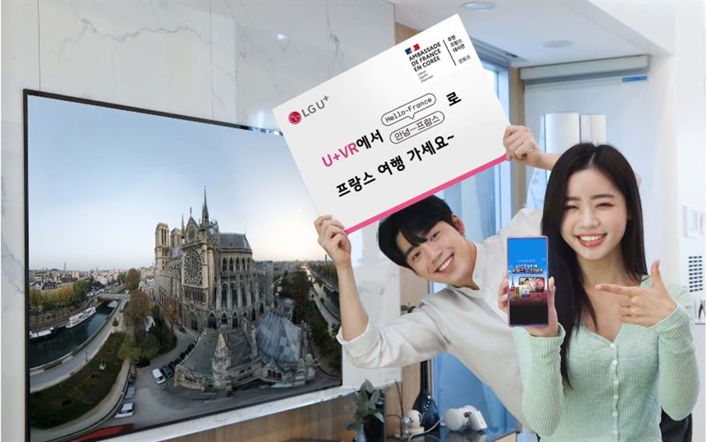 LG유플러스는 주한 프랑스 대사관과 함께 23일부터 가상현실(VR) 여행·공연·미술 콘텐츠 ‘안녕-프랑스’를 서비스한다고 밝혔다. U+VR 앱을 통해 통신사 상관없이 누구나 콘텐츠를 이용할 수 있다.