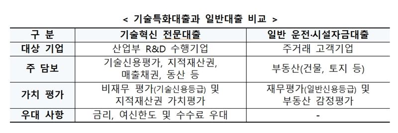 전문대출의 지원대상은 최근 5년 이내 R&D 수행한 기업 및 현재 R&D 수행 중인 기업을 대상으로 한다. 기술신용이 낮은 기업에 대해서도 기술보증기금에서 600억원 규모의 추가보증을 연계해줌으로써 많은 혁신기업들이 대출을 이용할 수 있다.