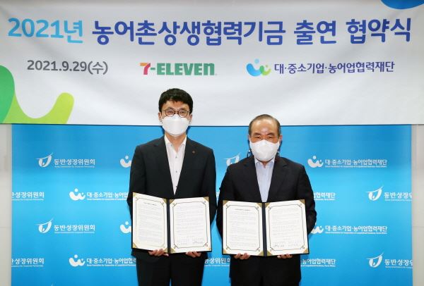 세븐일레븐이 대중소기업농어업협력재단과 손잡고 농어촌 지역사회를 위해 지원 활동을 펼친다. 세븐일레븐은 대중소기업농어업협력재단(사무총장 김순철)과 ‘농어촌 상생기금 출연 협약’을 체결했다고