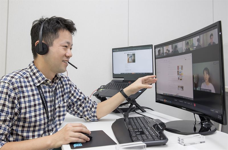 서울 강남구에 위치한 SSAFY 서울 캠퍼스에서 강사가 5기 교육생들을 대상으로 온라인 수업을 진행하고 있다. (사진=삼성전자)