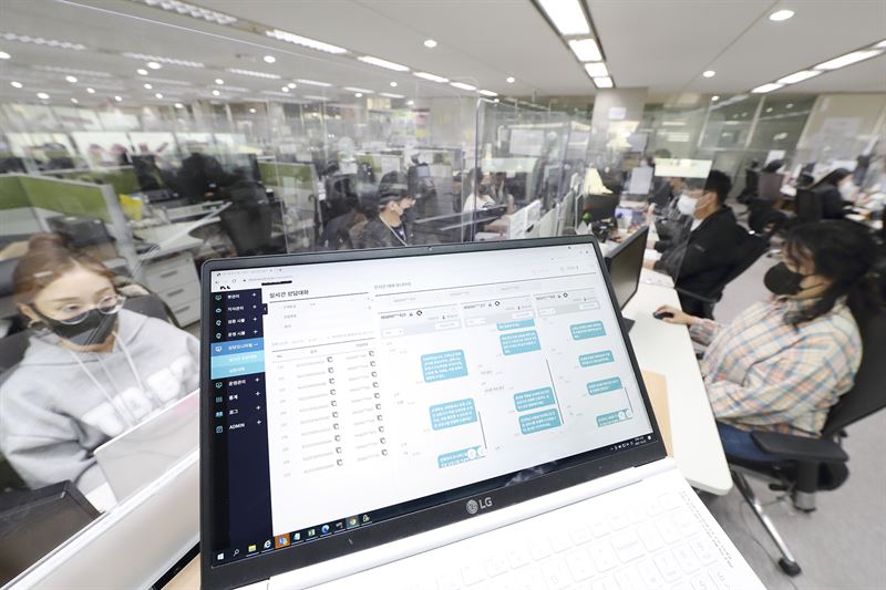 서울시 동작구의 KT 고객센터에서 직원들이 AI 상담 내용을 모니터링하고 있다. (사진=KT)