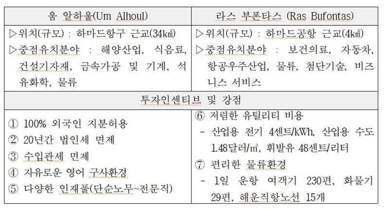 카타르 자유구역 현황 및 중점 유치분야. (자료=산업통상자원부)