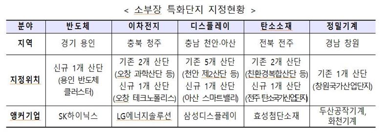 소부장 특화단지는 반도체, 이차전지 등 핵심산업의 소재·부품부터 완성품까지 밸류체인(가치사슬)을 집적화하는 클러스터로서 정부는 지난 2월 반도체 등 5개 분야의 특화단지를 지정했다.