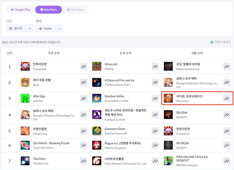 데브시스터즈는 개발 스튜디오 쿠키런이 개발 및 서비스하는 모바일 러닝게임 쿠키런: 오븐브레이크가 5주년 업데이트 직후 최고 매출 순위를 경신했다고 28일 밝혔다.