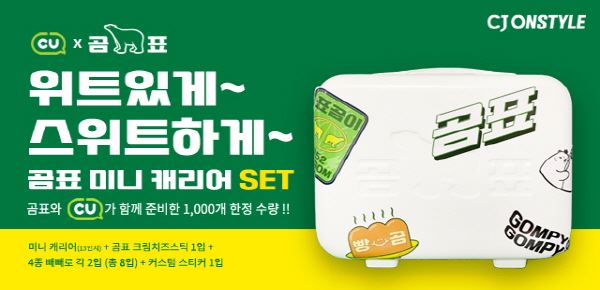 CU는 빼빼로데이를 앞두고 곰표와 손잡고 ‘곰표 미니 캐리어 세트’ 한정 상품을 선보인다. 13인치 크기의 깔끔한 화이트톤 곰표 미니 캐리어 안에 지난해 선보여 선풍적 인기를 끌었던 ‘곰표 크림치즈 스틱’을 포함한 9개의 다양한 빼빼로 제품과 곰표 커스텀 스티커를 넣은 구성이다. CU 편의점을 통해서 11월 5일부터 한정 수량 구매 가능하며, 가격은 3만 4천원이다.