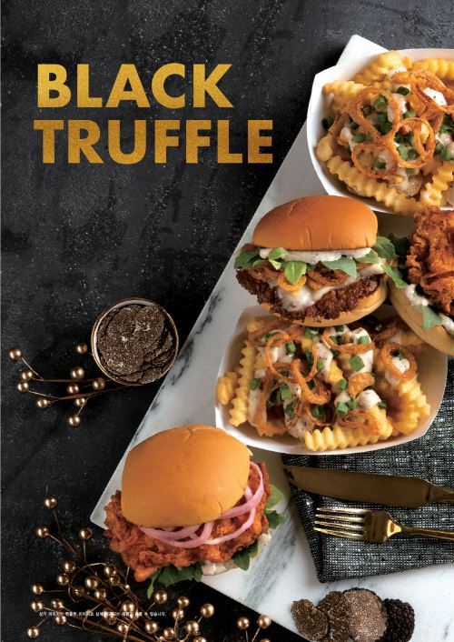 재출시 제품은 ▲스위스 에멘탈 치즈를 녹인 비프 패티 위에 블랙 트러플 소스, 샬롯 튀김이 올려 다양한 재료 간의 조화롭고 고급스러운 풍미를 느낄 수 있는 ‘블랙 트러플 버거(1만1900원)’ ▲수비드(Sous-vide, 저온 조리) 방식으로 익힌 촉촉한 닭가슴 통살을 바삭하게 튀겨 샬롯 피클과 함께 즐기는 ‘블랙 트러플 치킨(1만900원)’ ▲바삭한 크링클 컷 프라이와 입안을 가득 채우는 트러플의 풍미가 매력적인 ‘블랙 트러플 프라이(6900원)’ 등 3종이다