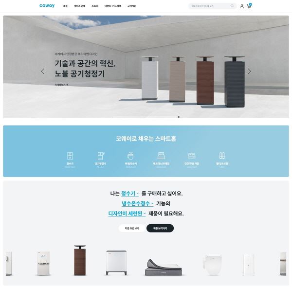 코웨이는 기존 공식 홈페이지를 전면 개편해 커머스 기능을 강화, 온라인 렌탈 구매의 편의성을 높이고 차별화된 쇼핑 환경을 제공하는 코웨이 온라인 렌탈 플랫폼으로 새롭게 구성했다.