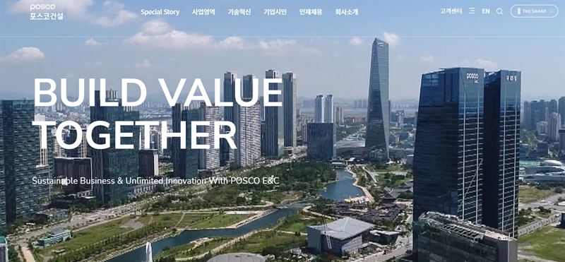 포스코건설의 홈페이지 개편은 10년만이다. 포스코건설은 홈페이지 개편을 통해 기업시민 경영이념 슬로건인 `Build Value Together`(같이 짓는 가치)를 담았다.