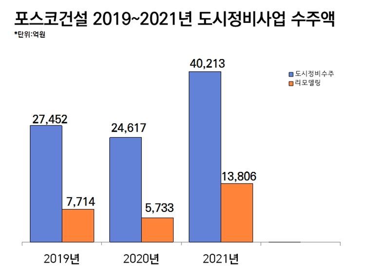 포스코건설 2019~2021년 도시정비사업 수주 실적액(그래픽=정지수 기자)
