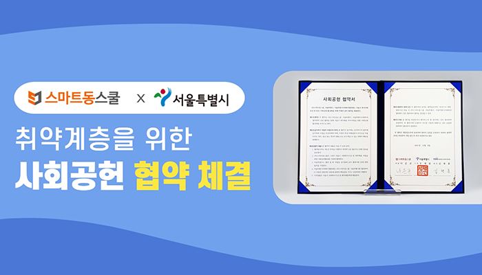 스마트동스쿨은 지난 8일 서울시, 서울특별시사회복지협의회와 함께 복지지원증진 및 민간사회공헌 활성화를 위해 사회공헌협약을 체결했다.