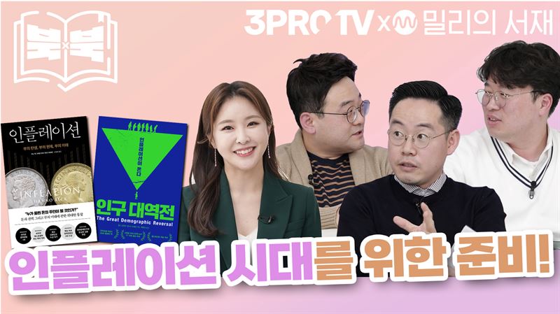 북vs북의 첫 번째 주제는 인플레이션으로 ‘인구 대역전(생각의힘 펴냄)’과 ‘인플레이션(다산북스 펴냄)’ 두 권을 두고 박정호 교수와 MC서미소랑, 김치형 트윈플러스파트너스 본부장, 최홍석 미래에셋대우 매니저가 각자의 의견을 나눈다. 북vs북에서 다뤄지는 모든 책은 밀리의 서재에서 볼 수 있다.