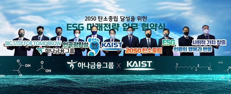 하나금융그룹은 KAIST와 함께 2050 탄소중립을 위한 ▲기후변화 문제 해결 ▲저탄소 에너지경제로의 전환 ▲신재생에너지 확대 등을 목표로 하는 ‘ESG 미래전략’ 업무협약을 체결했다고 24일 밝혔다.