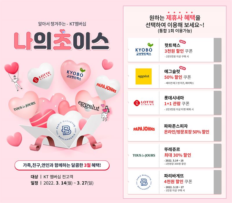 KT 멤버십 ‘나의 초이스’ 3월 혜택 이미지. (사진=KT)