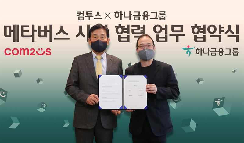 하나금융그룹 명동사옥에서 진행된 체결식에는 컴투스 그룹과 하나금융그룹의 주요 임원진이 참석한 가운데 컴투스 메타버스 플랫폼 컴투버스(Com2Verse) 사업의 상호 협력을 위한 파트너십을 약속했다.