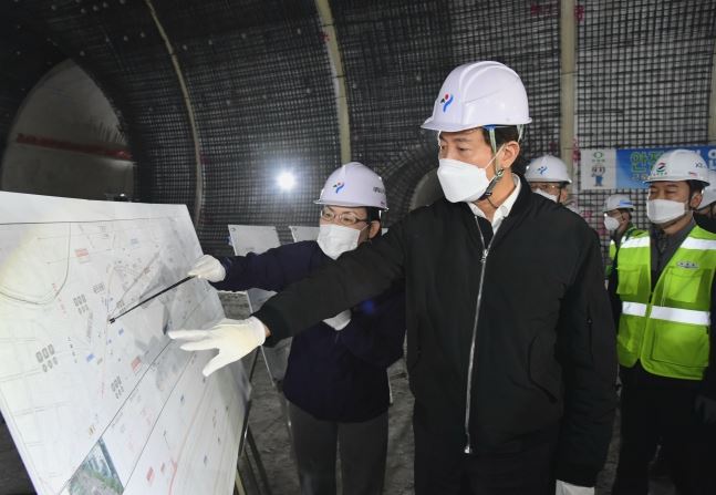 오세훈 서울시장이 지난 3월 2일 오후 서울 관악구 신림동 신림-봉천터널 2공구 공사 현장을 방문해 중대재해처벌법 시행에 따른 안전 관리 등을 점검하고 있다(사진=서울시)