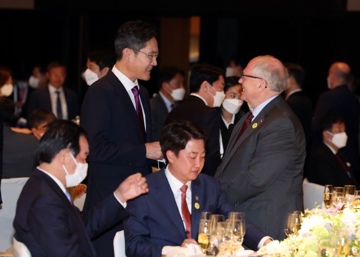 또한 이 부회장은 오는 20~22일 조 바이든 미국 대통령이 방한할 때 윤 대통령을 또 만날 것으로 예상된다. 바이든 대통령은 삼성전자 반도체 공장을 둘러보는 일정을 계획 중이 것으로 알려졌기 때문이다. 이 부회장이 삼성전자 반도체 공장에서 안내할 것으로 예상되는 가운데 윤 대통령도 함께 방문할 것으로 보인다.