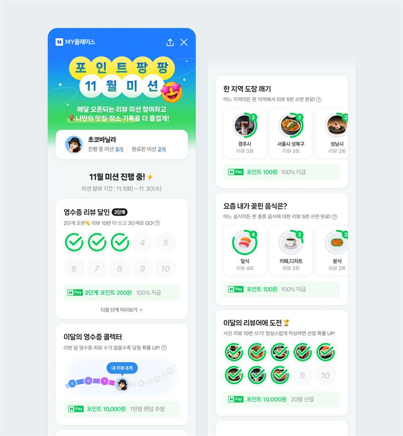 네이버 MY플레이스, ‘리뷰 미션’ 프로그램. (자료=네이버)