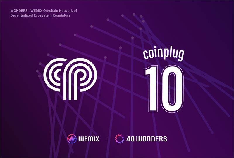 고유번호 10(WONDER 10)으로 합류한 코인플러그는 2013년 출범한 1세대 블록체인 기업이다. 국내외 340건의 블록체인 관련 기술 특허를 출원하는 등 독보적인 기술력을 보유했다. 현재 블록체인 기반 DID(분산신원인증), DeFi(탈중앙화 금융) 프로젝트를 비롯해 다양한 기업용 블록체인과 메인넷 플랫폼 사업을 전개하고 있다.