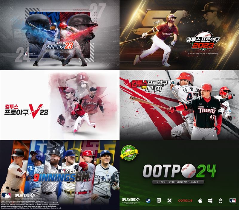 컴투스는 MLB와 KBO 공식 라이선스 기반의 야구게임 ▲‘MLB 9이닝스 23’ ▲‘컴투스프로야구2023’ ▲‘컴투스프로야구V23’ ▲‘컴투스프로야구 for 매니저’ ▲‘MLB 9이닝스 GM’ ▲‘OOTP 24’ 등을 서비스하고 있다.