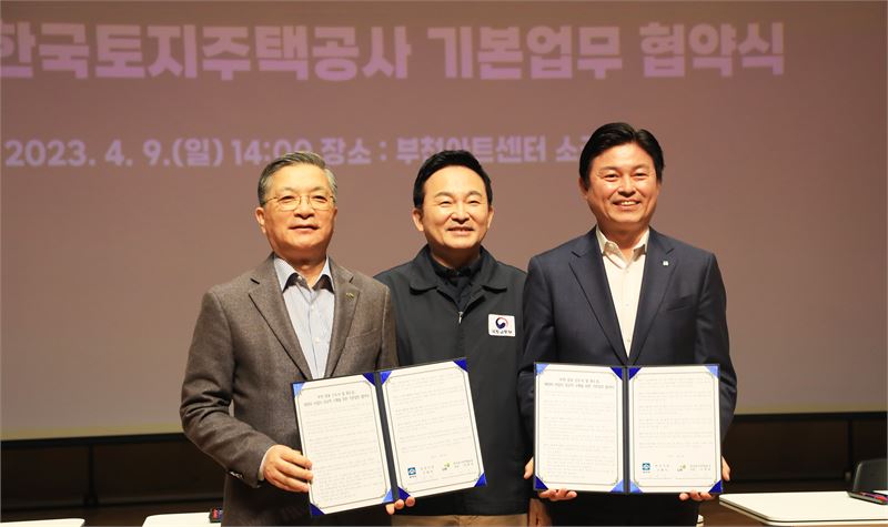LH는 전날 부천아트센터에서 부천시와 부천 중동 신도시의 시민 맞춤형 재정비 및 원도심 노후 주거환경 정비의 성공적 추진을 위한 기본업무 협약을 체결했다고 10일 밝혔다.
