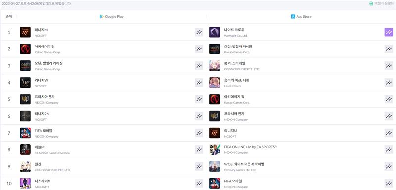 27일 앱 통계 분석 플랫폼 모바일인덱스에 따르면 '나이트 크로우'는 이날 오후 4시 10분을 기준으로 애플 앱스토어 매출 1위에 올랐다. 기존 1위는 카카오게임즈의 '오딘: 발할라 라이징'이다.