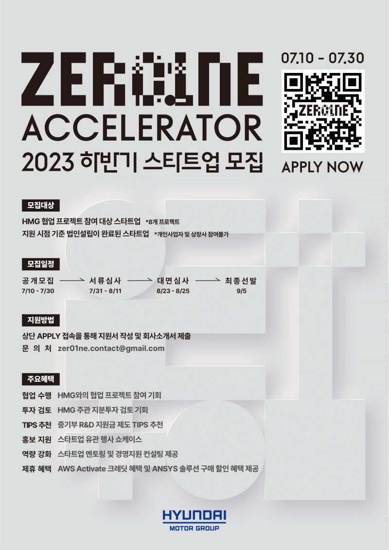 현대자동차그룹이 차량용기술과 로보틱스 분야 등의 스타트업과 협업하는 '제로원 엑셀러레이터'를 오는 30일까지 공개모집한다고 10일 밝혔다. (사진=현대차그룹)