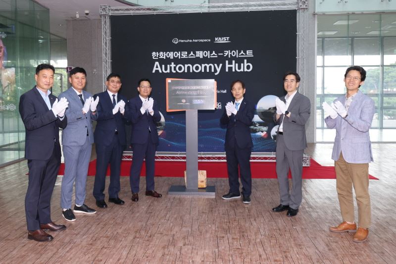 한화에어로스페이스와 KAIST가 26일 대전 KAIST에서 오토노미허브 개소를 기념하는 현판식을 개최했다. (사진=한화에어로스페이스)