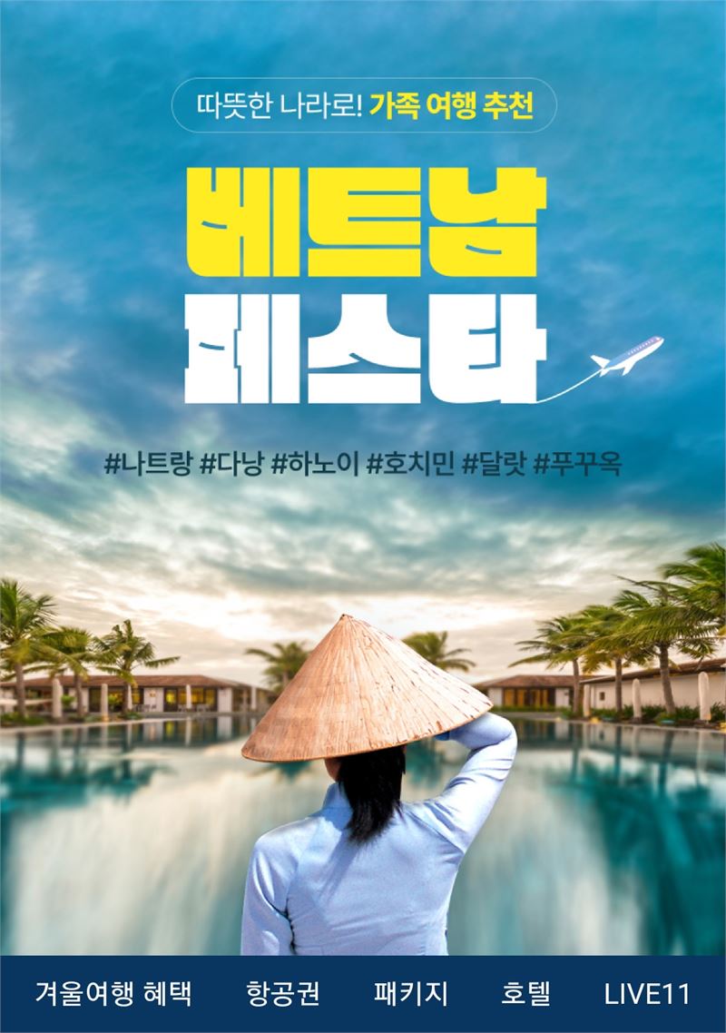 권용무 11번가 제휴사업담당은 “가족여행 수요가 높은 겨울방학, 연말연시 등을 맞아 큰 부담없이 떠날 수 있는 베트남 인기 여행 상품을 다양하게 준비했다”며 “따뜻한 휴양지에서 재충전 시간을 보내길 바란다”고 말했다.